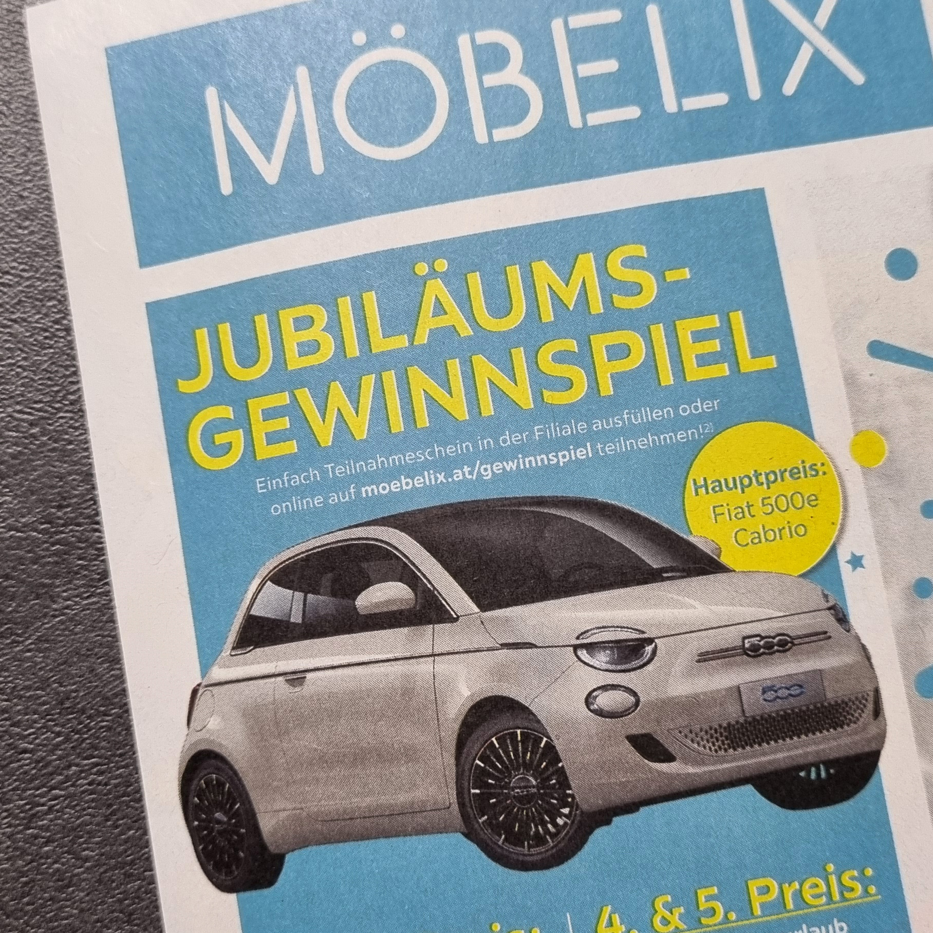 Möbelix-Gewinnspiel: Hauptpreis ein Fiat 500e Cabrio