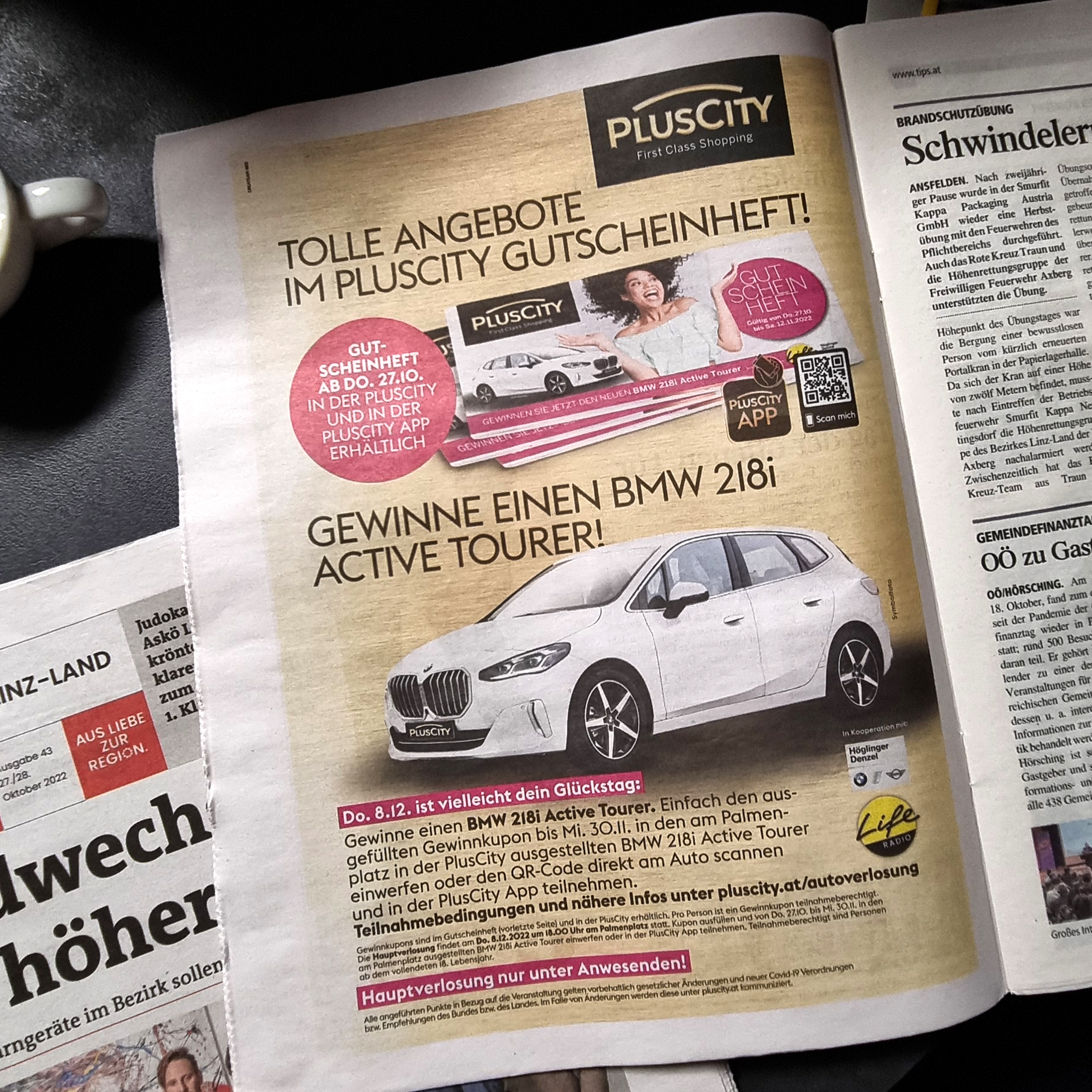 Pluscity-Gewinnspiel: Hauptpreis: BMW 218i Active Tourer