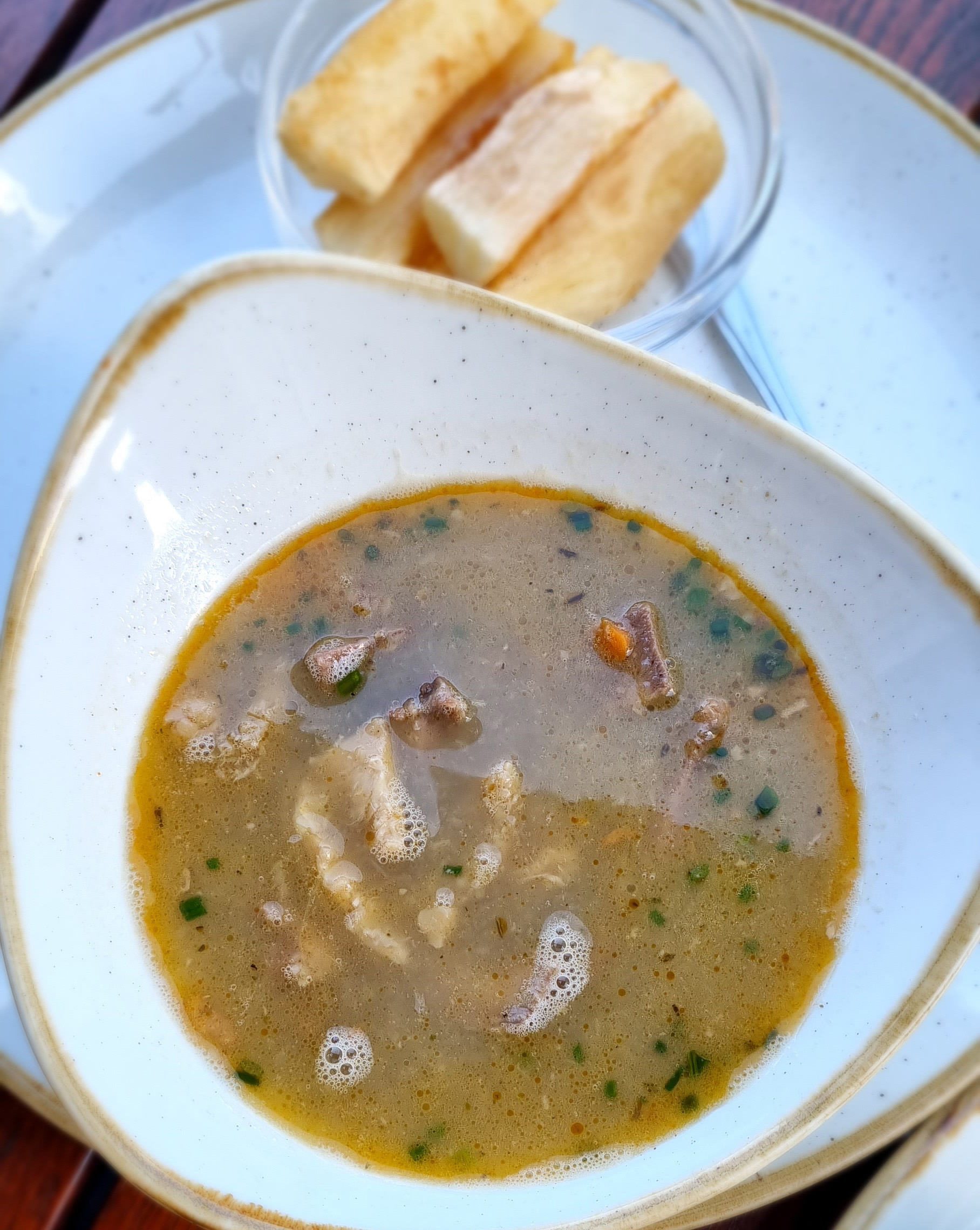 Pepesoup - traditionell gewürzte Rindsinnereiensuppe mit Yams