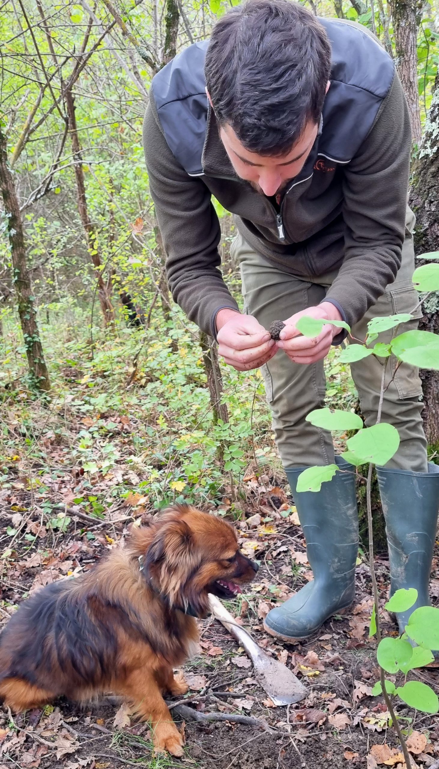 - Die Trüffelhunde der Familie werden von Mirko ausgebildet. Das funktioniert so, dass bereits die Welpen Trüffel im Futter erhalten. Danach beginnt das Training, bei dem die Trüffel immer tiefer eingegraben wird, um die Nase der Hunde zu schulen. Wobei hier die jungen auch von den älteren lernen. Hat ein Hund eine Trüffel gefunden, legt er sich auf Befehl daneben hin. Die Trüffel wird dann von Mikro mit einer Spezialschaufel ausgegraben. Ist die Knolle zum Beispiel beschädigt bekommt der Hund auch ein Stück davon – ansonsten einfach ein anderes Leckerli.