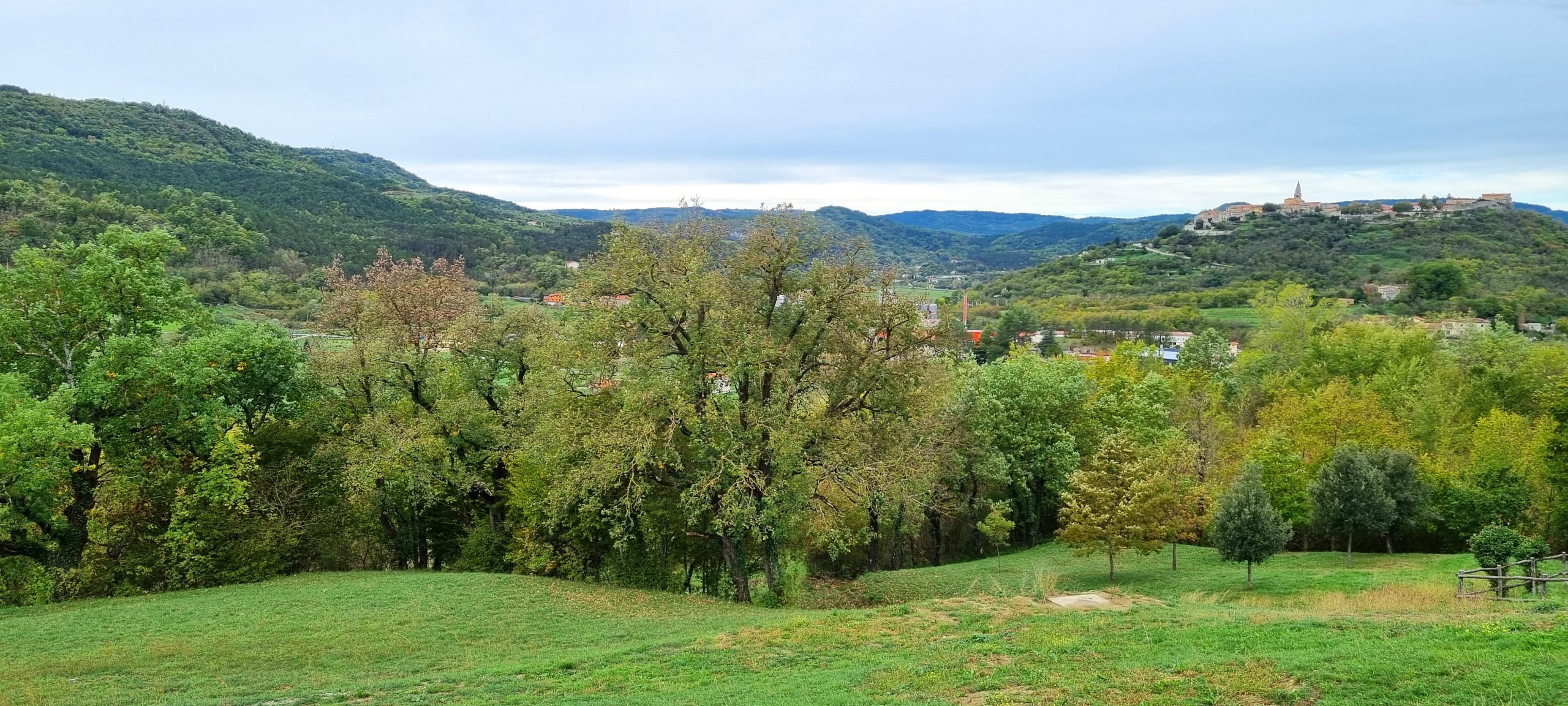 In Istrien gibt es einige Familien, die sich der Trüffelsuche verschrieben haben, so auch die Familie Prodan, die seit einigen Generationen mit Ihren Hunden Trüffelsuchen anbietet. (Im Hintergrund die mittelalterliche Stadt Buzet)